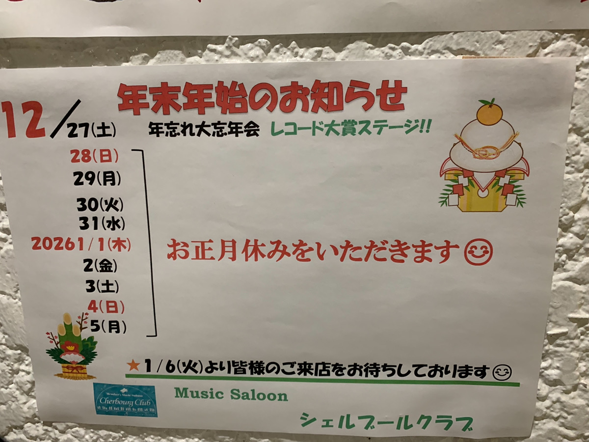 年末年始のお知らせ